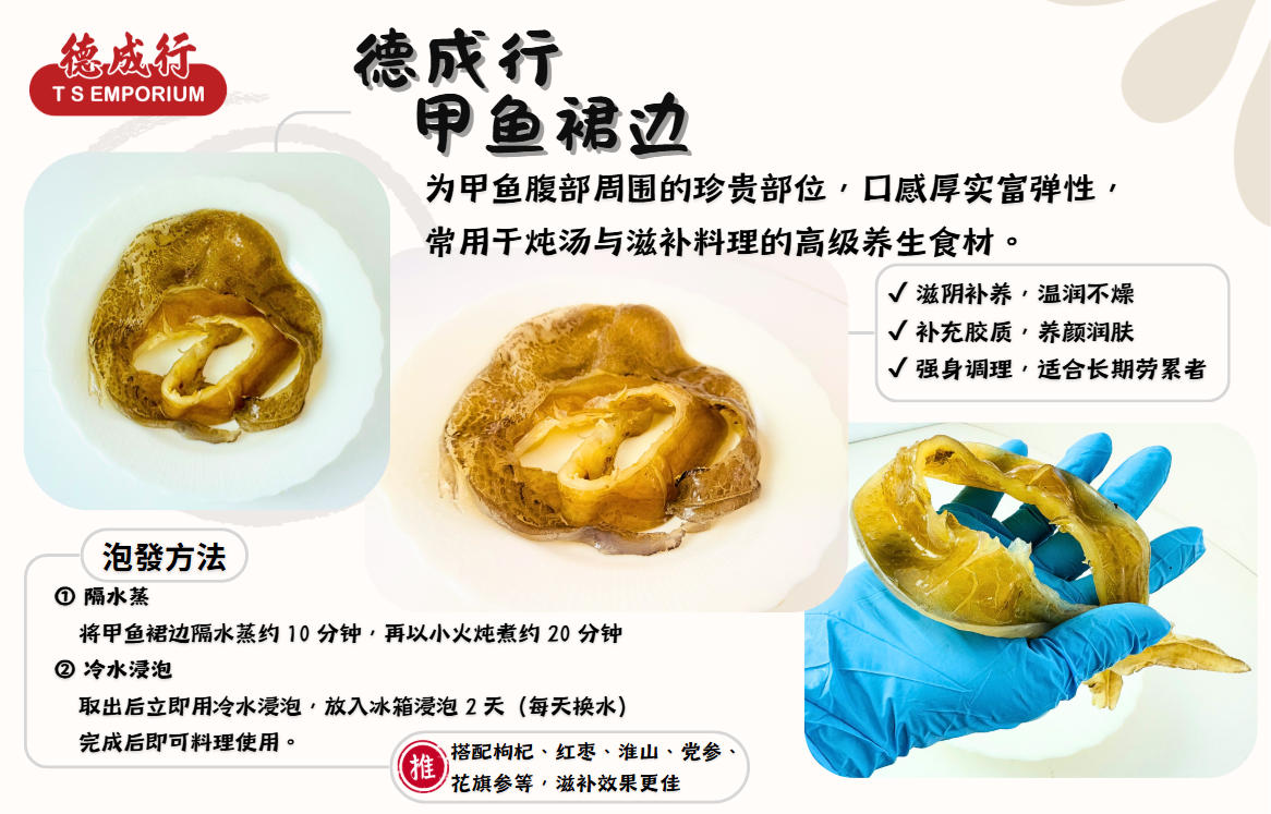 ⒊ 甲鱼裙边还能“补劳伤,壮阳气,大补阴之不足”;