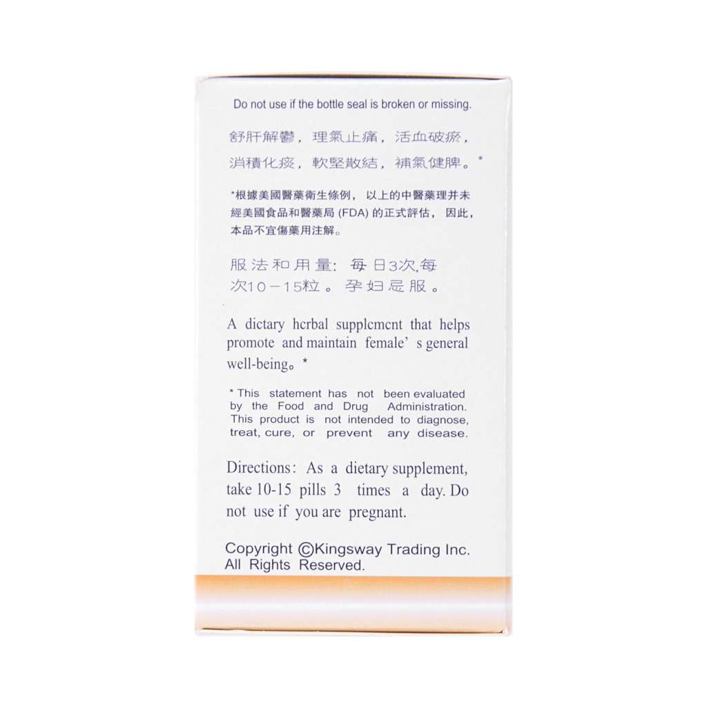 名 称:妇科乳结消小丸品 牌:KGS/中华验方产 地:中国净 重:45g(1.6oz)/150粒