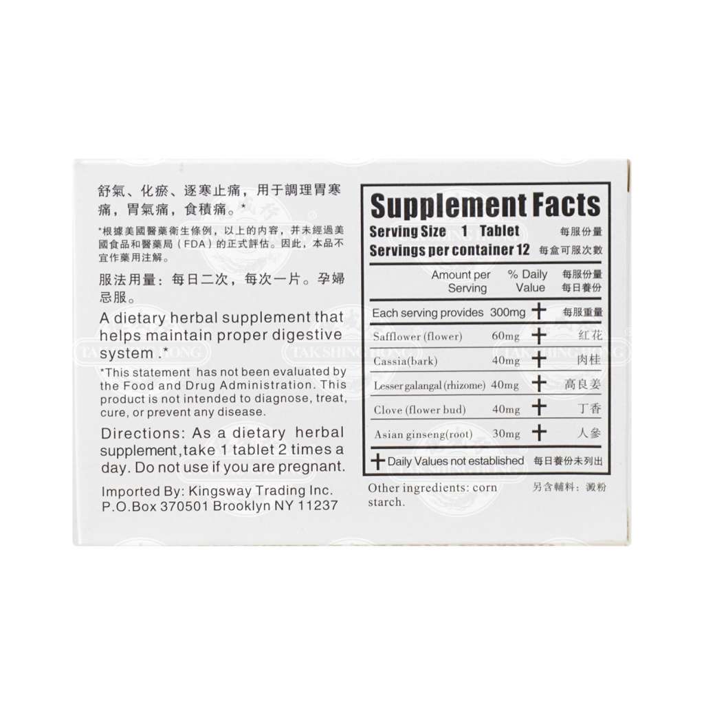 主治功效:舒气、化瘀、逐寒止痛,用于调理胃寒痛,胃气痛,食积痛。
