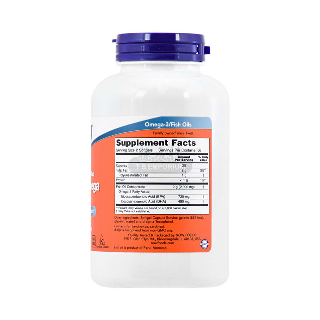 Now 强力深海鱼油Omega EPA 含量(每粒软胶囊 360 毫克)是我们常规强度(每粒软胶囊 180 毫克)的两倍。